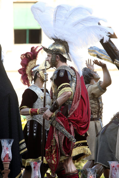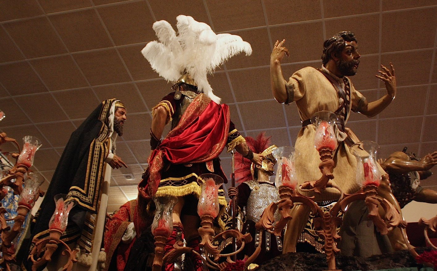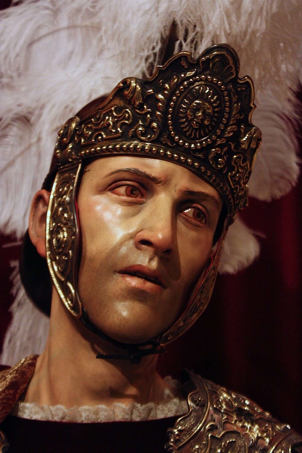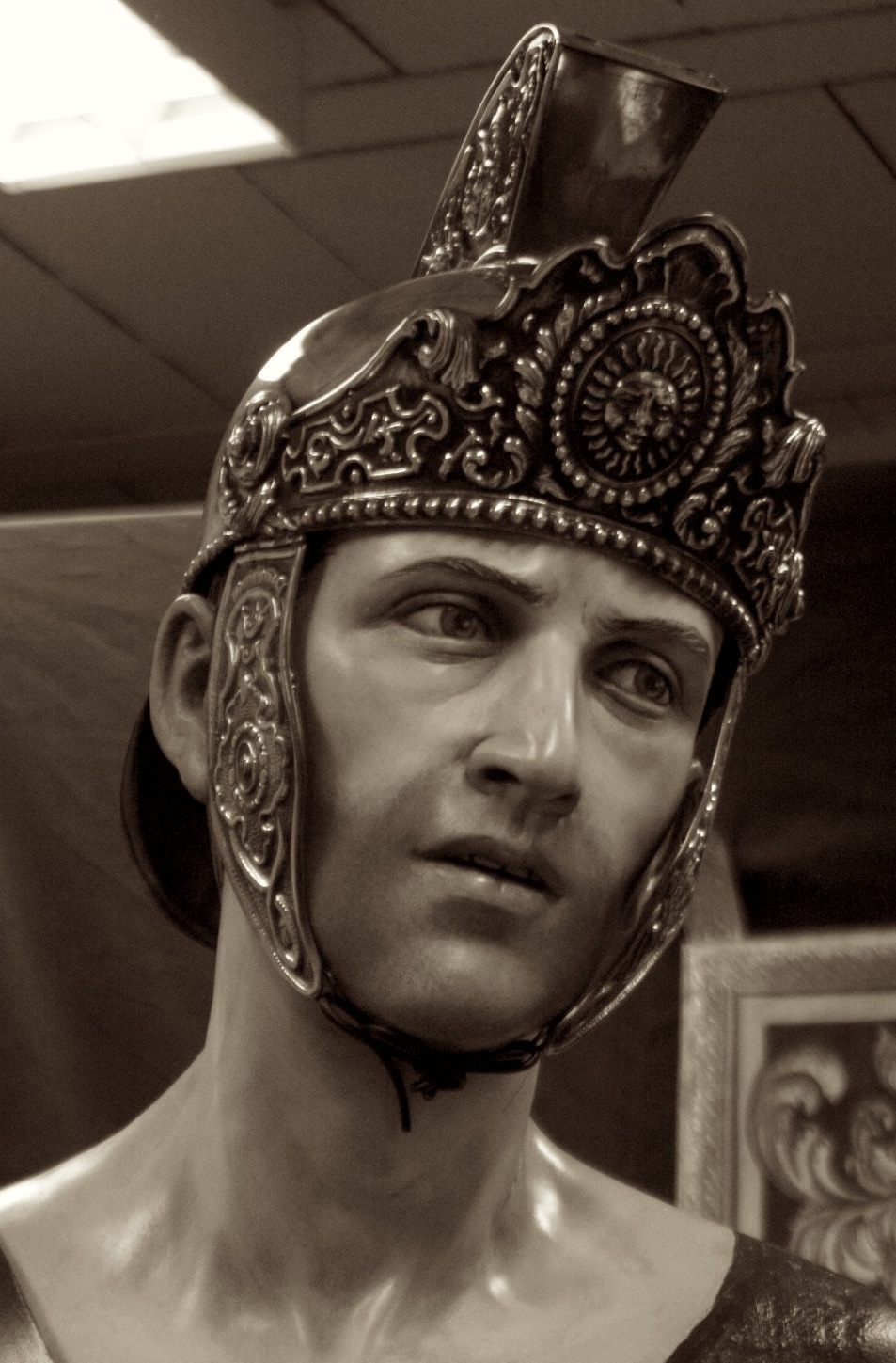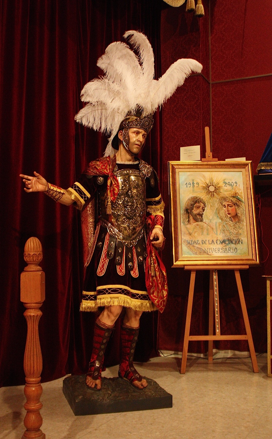 CON LA REALIZACIÓN DE ESTA IMAGEN DEL CENTURIÓN ROMANO SE COMPLETA LA AMPLIACIÓN DEL CONJUNTO ESCULTÓRICO DEL PASO DE CRISTO DE ESTA HERMANDAD JEREZANA. LA IMAGEN ,REALIZADA EN MADERA DE CEDRO Y POLICROMADA AL ÓLEO,CONVERSA CON JOSÉ DE ARIMATEA REALIZADA EN EL AÑO ANTERIOR. LAS ROPAS HAN SIDO DISEÑADAS POR DAVID CALLEJA(QUIÉN LAS HA EJECUTADO Y HA PINTADO MAGISTRALMENTE ) Y POR MÍ.LA ORFEBRERIA ES OBRA DE MANUEL Y JOAQUÍN DE LOS RIOS BAJO MI DISEÑO Y REALIZACIÓN DEL MODELO ESCULTÓRICO DE LA IMAGEN DE MINERVA QUE PRESIDE EL PECHO DE LA CORAZA.