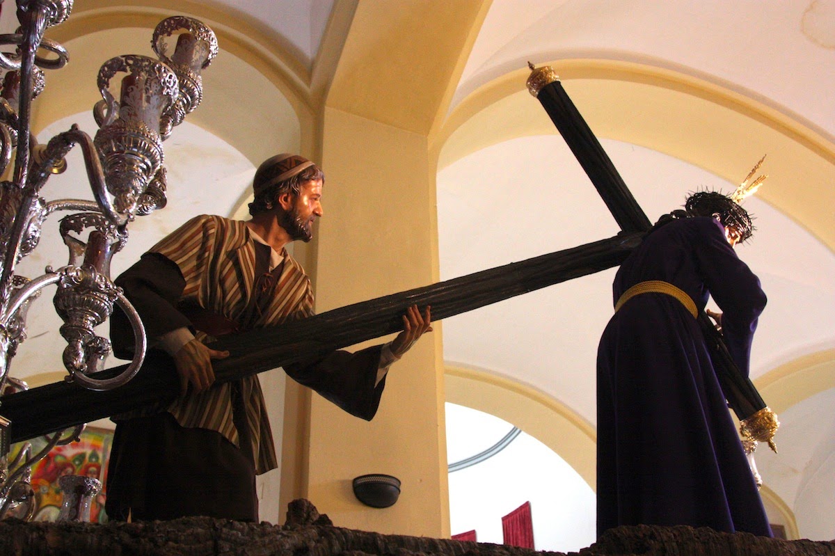 Esta imagen, es el regalo que con todo mi cariño y agradecimiento, le he ofrecido a mi Señor de la Caridad de la Hermandad de San José Obrero de Sevilla, obra con la que comencé en la imaginería y a la que le debo todo. Es este simulacro del Señor el que me dio a conocer y a iniciar mi carrera profesional y, con este gesto, quiero que sea este Cirineo quién lo ayude para siempre en su paso a llevar la Cruz. Para este rostro, tomé los rasgos del fallecido Padre Victor, párroco que encargó la hechura del Señor,tributándole de esta manera un pequeño pero sentido homenaje por cuanto ayudó a la Hermandad y a mí personalmente.