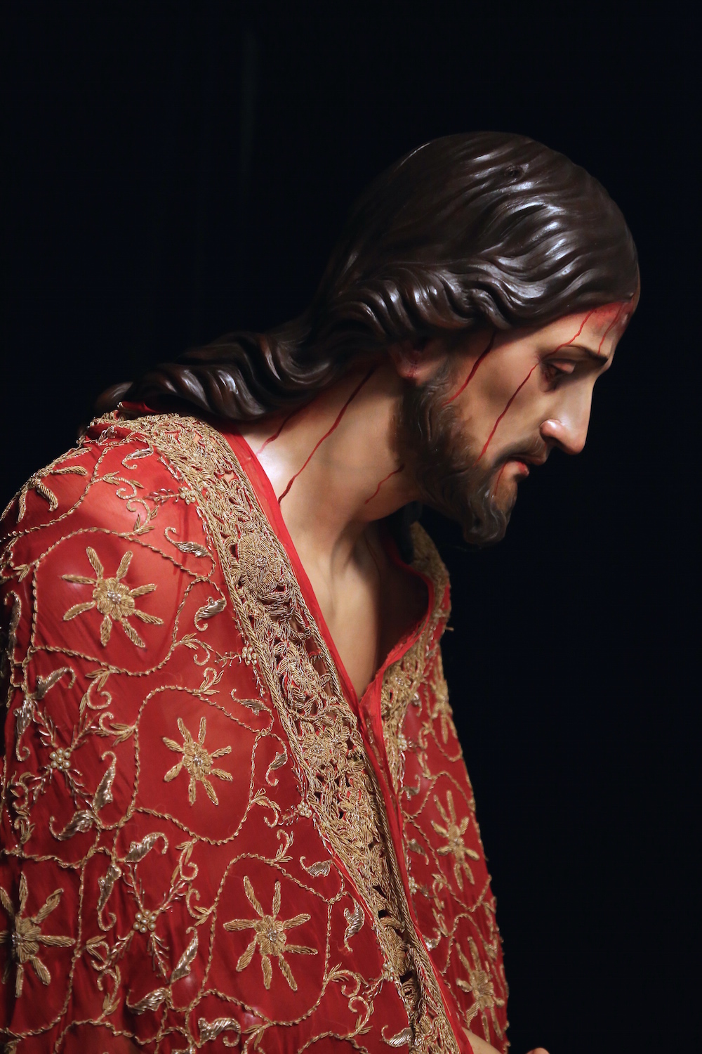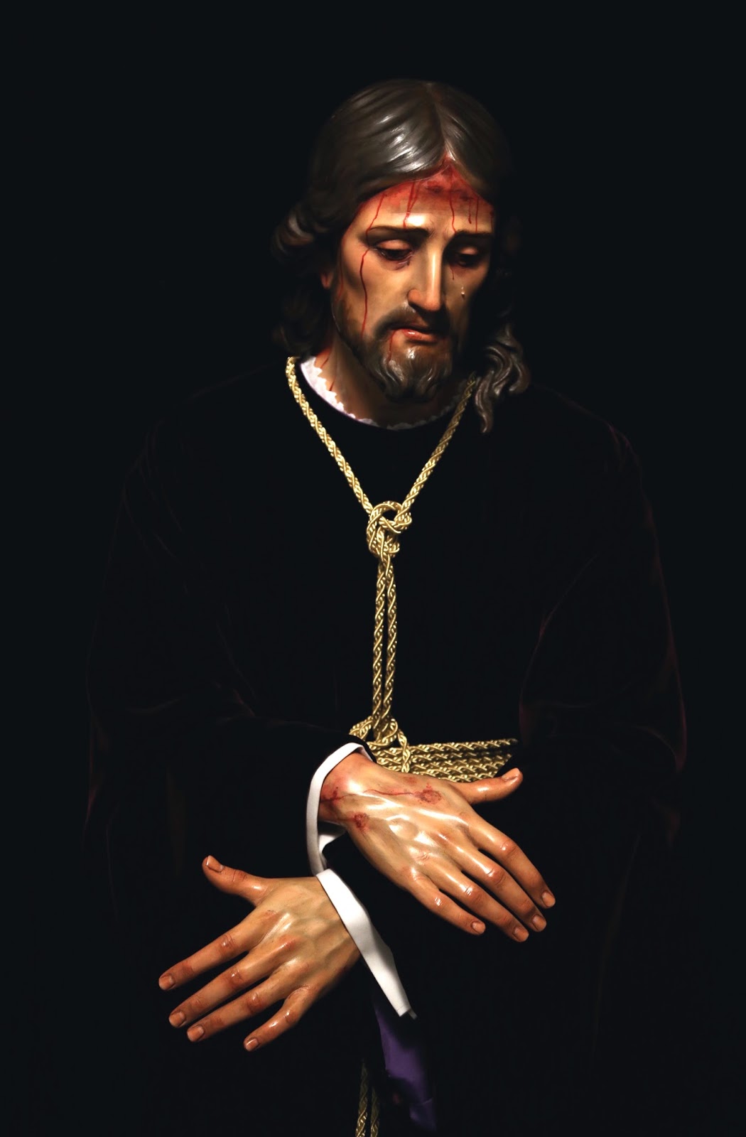 Imagen de tamaño natural realizada en madera de cedro completamente anatomizada y con brazos articulados, que sustituye al Titular anterior realizado en los talleres de la fábrica religiosa de Olot(Gerona). Recuerda en la postura, inclinación y rasgos principales del semblante a Ésta, al igual que en cargar la Cruz en el hombro derecho, aunque confiriéndole su propia personalidad. lleva corona de espinas natural ciñendo su cabeza en cuyo rostro, y por expreso deseo de la Hermandad, muestra una lágrima en recuerdo de la Imagen sustituida, como ya hiciera en la Imagen de Jesús de la Salud de Jerez de la Frontera.