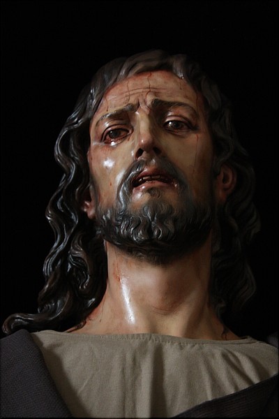 Imagen realizada en 2014 para la Agrupación de la Santísima Virgen de la Esperanza de esta localidad. Tallada en madera de cedro policromada al óleo con una altura aproximada de 185 cm está anatomizada y tiene brazos y muñecas articuladas. Representa el momento en que Jesús es traicionado por Judas en el huerto de los olivos.Presenta sudor de sangre (hematohidriosis) y sudor natural producido por el estres emocional del trance vivido.Su vestimenta recuerda por expreso deseo de la Agrupación a la Imagen titular de la Hermandad de la Redención de Sevilla, madrina de su Bendición. Las potencias han sido realizadas por Jose Manuel Bernet con diseño de mi autoría.