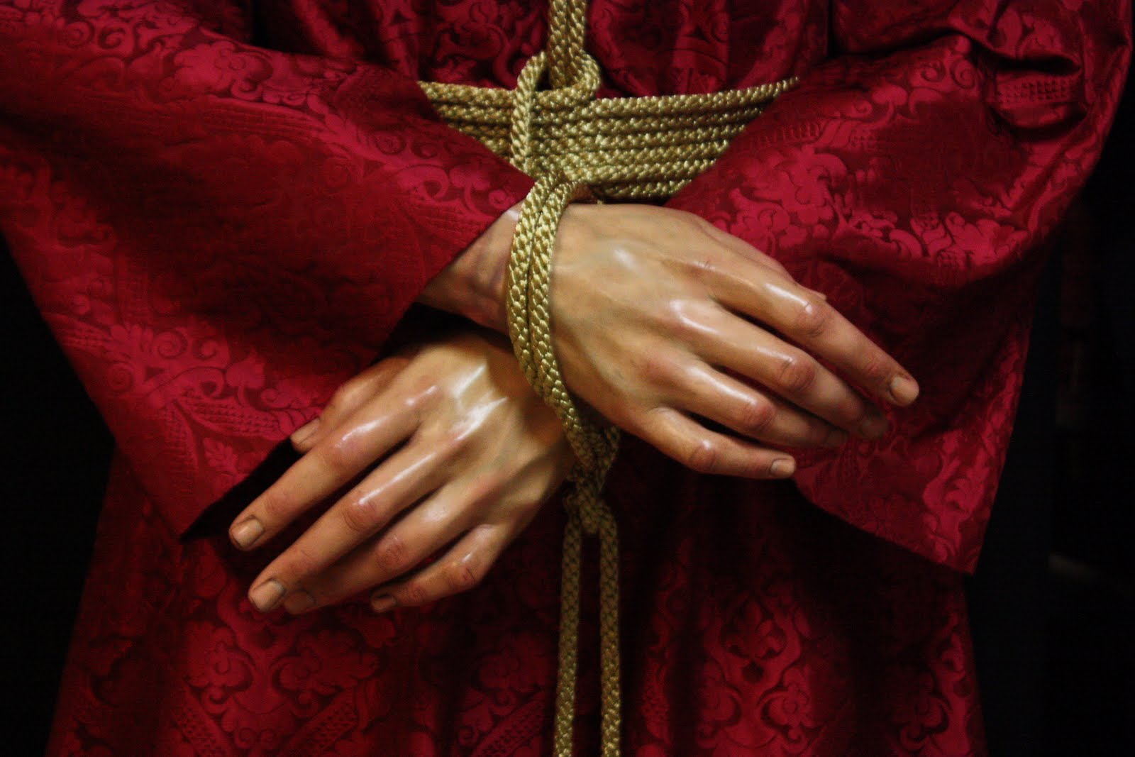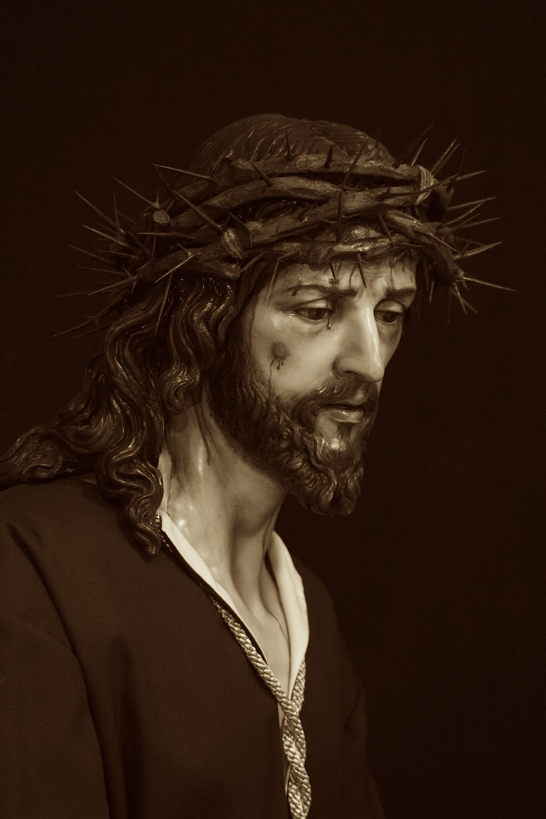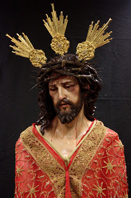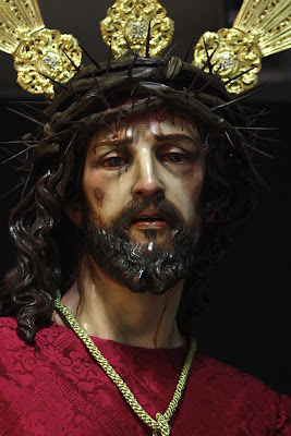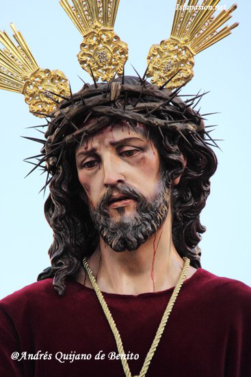 ESTA ES MI ÚLTIMA OBRA . EL SEÑOR DEL AMOR, EL QUE A PARTIR DE AHORA ES EL SEÑOR DEL BARRIO DE FUENTEAMARGA EN CHICLANA. UNA IMAGEN QUE REPRESENTA A CRISTO EN EL MOMENTO DE SER SENTENCIADO A MUERTE. DE AHÍ SU ROSTRO PENSATIVO, TRISTE PERO SERENO, ASUMIENDO LA DURA CARGA DE MORIR POR AMOR AL HOMBRE. LA SANGRE FRESCA, EL SUDOR DE LA FRENTE Y EL CABELLO AGUDIZAN EL MOMENTO. SU CUERPO SE PRESENTA EN CONTRAPOSTO SOBRE LA CADERA IZQUIERDA, Y CON UNA LEVA ZANCADA AVANZANDO LA PIERNA IZQUIERDA EN ACTITUD DE CAMINAR SIMBÓLICAMENTE HACIA LA CRUZ DE SU MARTIRIO QUE YA LO ESPERA. LA OBRA ESTÁ COMPLETAMENTE ANATOMIZADA SALVO LOS BRAZOS QUE SON ARTICULADOS. LA CORONA DE ESPINAS ESTÁ TALLADA SOBRE LA PROPIA CABEZA. LUCE POTENCIAS DE ORFEBRERÍA ANDALUZA.