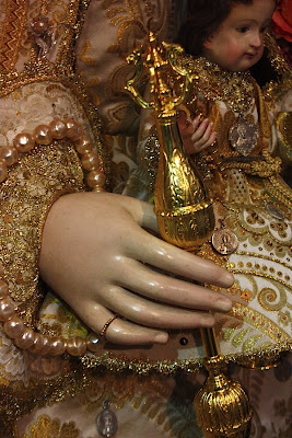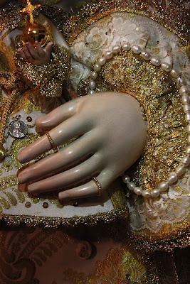 Esta es la réplica de de la Stma. Virgen del Rocío y del PastorcitoDivino que he realizado para la Hermandad homónima de Puerto Real. Se trata de un simulacro de la Patrona de Almonte realizada a su imagen y semejanza. Ambas imágenes son de madera de cedro policromadas al óleo, siendo la Virgen de estructura de candelero y brazos articulados, y el Pastorcito de talla completa. Orfebrería andaluza ha realizado magistralmente los atributos y David Calleja las ropas de brocado de seda. Quiero desde aquí agradecer a ambos la dedicación y cariño puestos en este trabajo,aunque en ellos es norma general.