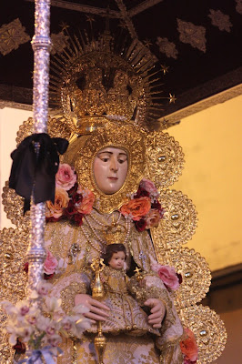 La imagen fue bendecida el pasado 15 de agosto, procesionando en las andas de mi Hermandad del Rocío de Sevilla, a la cual le estoy muy agradecido por haberlas cedido.