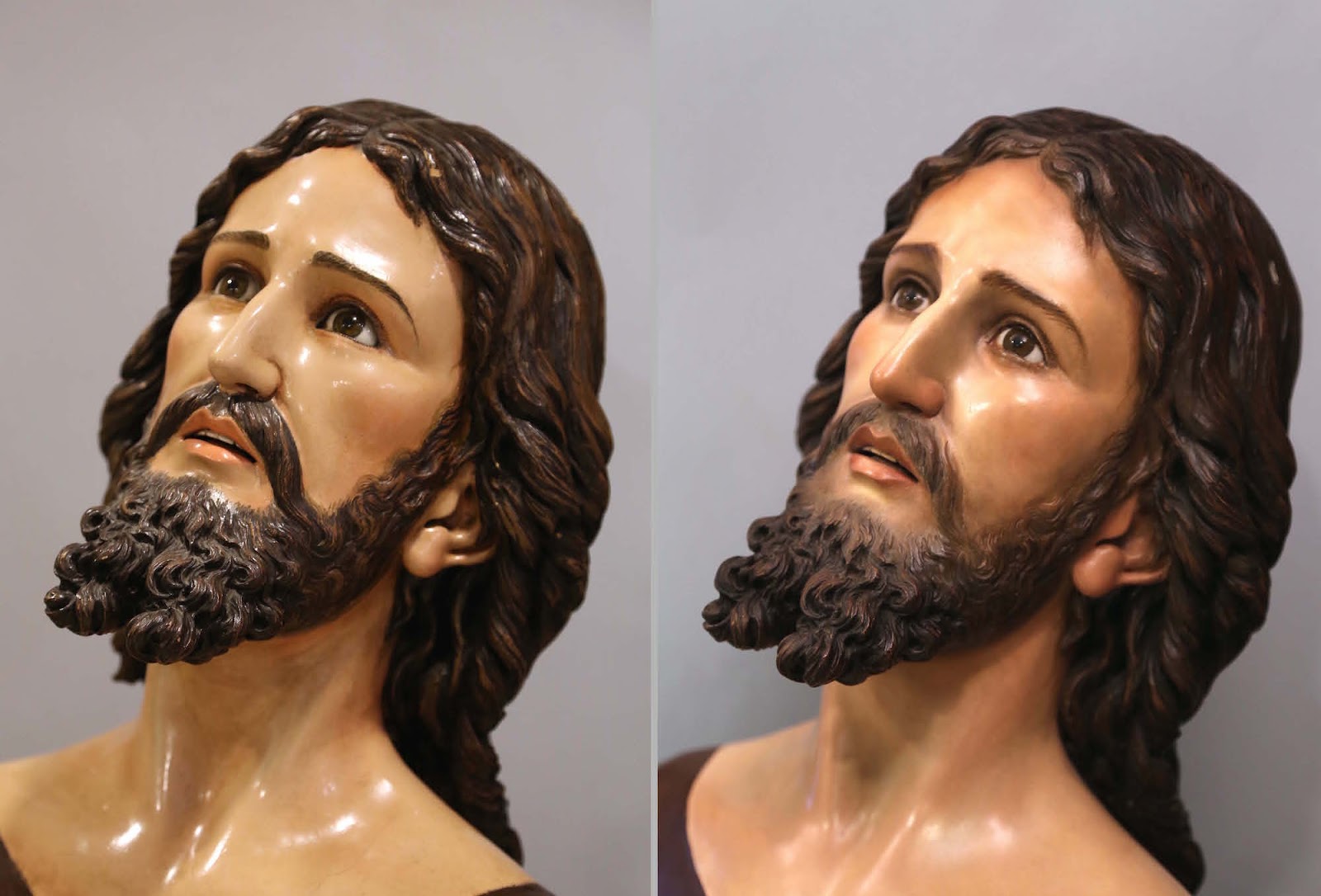 Intervención sobre esta obra de Pío Mollar que en este 2017 cumple el primer centenario de su hechura. Desgraciadamente, desde 1996 y tras una intervención desafortunada, la valía pictórica de la Imagen y por lo tanto sus valores escultóricos y su calidad quedaron desvirtuados. Además dpresentaba problemas de fisuras y desplazamiento de volúmenes y que los ojos de cristal habían perdido su ahesión y estaban suelto