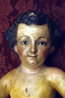 LA LIMPIEZA DE LA POLICROMÍA SE HA REALIADO CON SUMO CUIDADO RETIRANDO LA CAPA DE SUCIEDAD PERO SIN NECESIDA DE PATINAR LA OBRA CON POSTERIORIDAD A DICHA LMPIEZA. AL NIÑO SE LE HA DESCUBIERTO LA POLICRMÍA ORIGINAL DEL CUERPO QUE ESTABA CUBIERTA POR UN REPINTE.