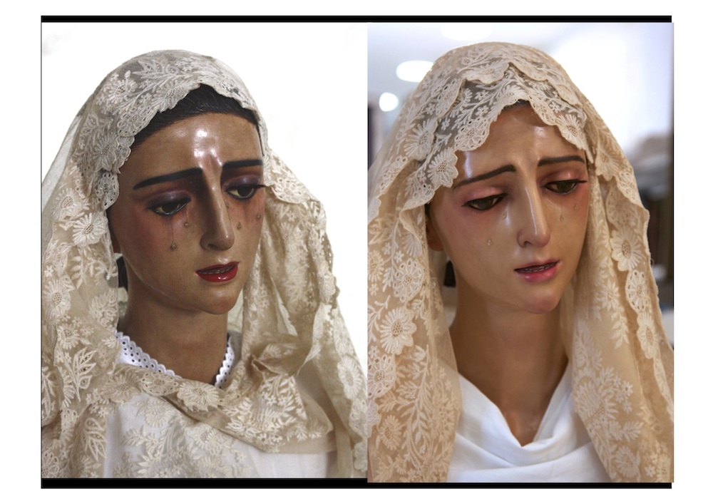 Evidentemente, el cambio es grandísimo. Pero sólo se ha descubierto la belleza que la Virgen tiene y que estaba oculta tras una policromía poco acertada. Ahora nos presentamos ante una Virgen hermosa, dulce, triste que invita a rezar y al recogimiento.