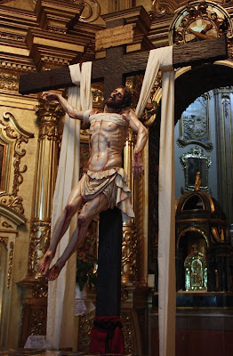 LA IMAGEN DE 170 CM DE ALTURA HA SIDO REALIZADA EN MADERA DE CEDRO , MEDIANTE LA TÉCNICA DE LA TALLA DIRECTA PARA EL CUERPO Y SUDARIO , YA QUE LA CABEZA Y LAS MANOS SÍ HAN SIDO MODELADAS Y SACADAS DE PUNTO. LA POLICROMÍA HA SIDO REALIZADA AL ÓLEO.